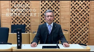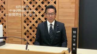 6月21日(金)及び23日(日)に開催された6月定例会議の一般質問概要動画を掲載しています。(質問時間は1人30分以内です。)