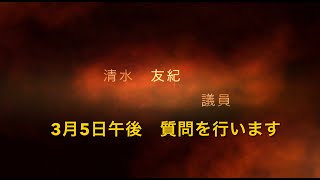 3月5日(火)に開催された3月定例会議の一般質問概要動画を掲載しています。(質問時間は1人60分以内です。)